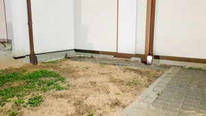 Wykonano odprowadzenie wodu z rynien z których woda leciała pod kościół